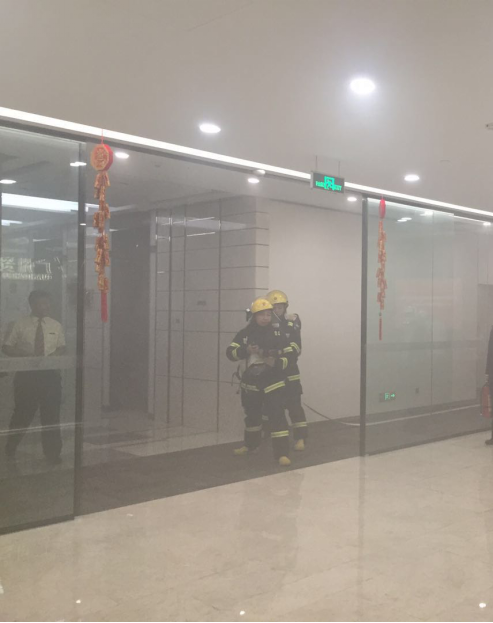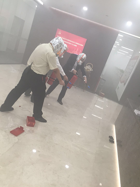 本次演练模拟广州资产前台电线短路导致发生火警,被员工发现并立即使用灭火器进行初期火灾扑救,并大声呼喊员工撤离大厦,同时打电话向大厦消防中心报告火警。大厦消防中心接到火灾报警,立即通知当值安防人员携带灭火器在规定时间内到达58层进行火灾扑救。